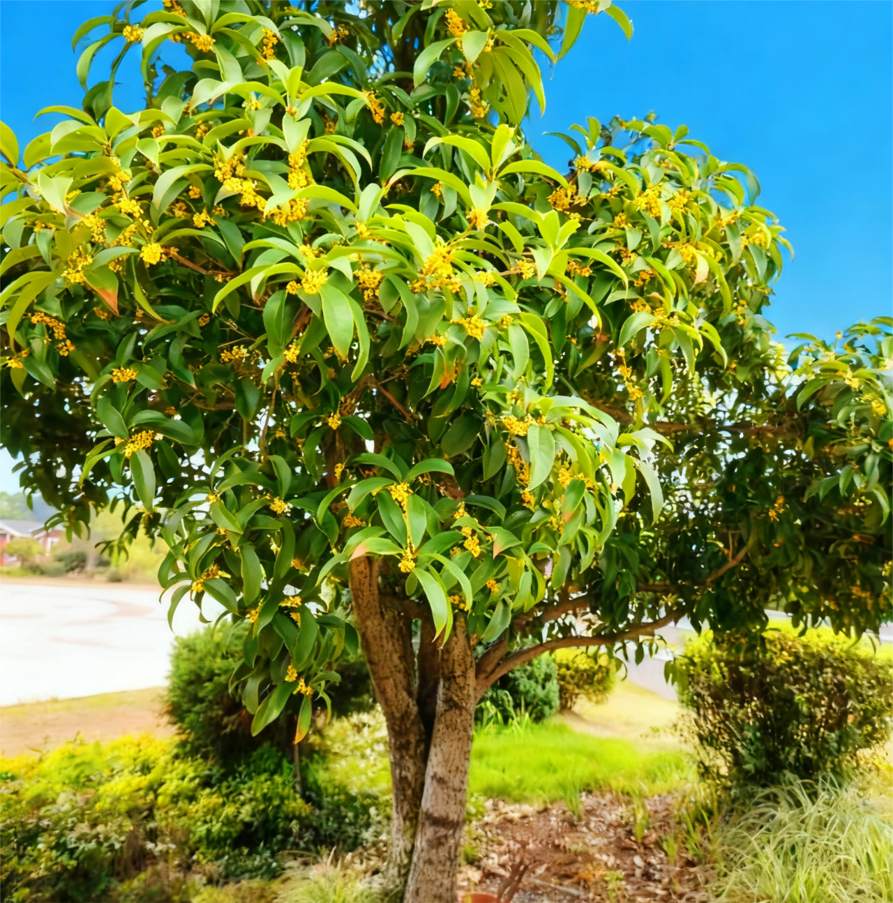 基地在園區(qū)規(guī)劃時(shí),便著眼于四季景觀的營(yíng)造,桂花因兼具觀賞價(jià)值與文化意蘊(yùn),成為重點(diǎn)栽種的花木之一。經(jīng)過(guò)精心培育,如今基地的桂花已形成多處景觀集群,在辦公樓廣場(chǎng)及生態(tài)停車場(chǎng)周邊均有分布。不同于春日花卉的絢爛奪目,桂花以“香”為魂,以“雅”為韻,且花期恰逢金秋,既為豐收時(shí)節(jié)增添了芬芳,也為忙碌的基地生活注入了舒緩的氣息,其盛花期預(yù)計(jì)可持續(xù)20天左右,讓大家能充分沉浸在桂香之中。